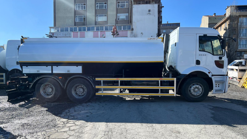 2016 model Ford Cargo 2532 8x2 arazöz aracımız, 15.000 litre kapasiteli sulama tankı ile geniş alanların sulanması, yol yıkama ve toz bastırma gibi çeşitli ihtiyaçlarınıza cevap veriyor. Ön yol sulama ünitesi, 20 metre makaralı jetleme/sisleme sistemi ve 360 derece dönebilen, 40 metreye kadar su püskürtebilen üst monitörü sayesinde en zorlu görevlerin bile üstesinden kolaylıkla gelebilirsiniz.